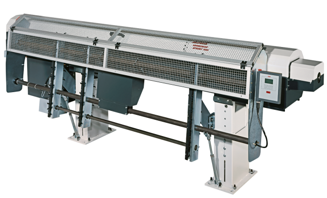 Stangenlademagazin für Drehmaschinen mit festem oder beweglichem Spindelstock für den Durchmesserbereich von 5 bis 65 mm. Dieses Gerät garantiert maximale Produktivität bei geringem Platzbedarf. Das Model Sprint eignet sich für den Einsatz bei großen – oder mittelgroßen Serien und durch seine Flexibilität ebenfalls bei Kleinserien die ein schnelles Umrüsten erfordern