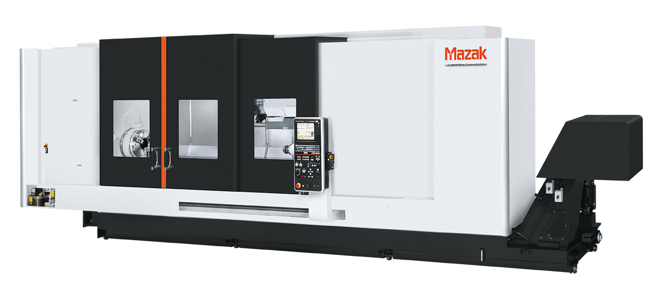Die Serie Cybertech Turn von Mazak ist ausgestattet mit einem System für lange Bohrstangen und unterem Revolver und erreicht damit höhere Produktivität bei der Bearbeitung von langen Wellenteilen mit großem Durchmesser.