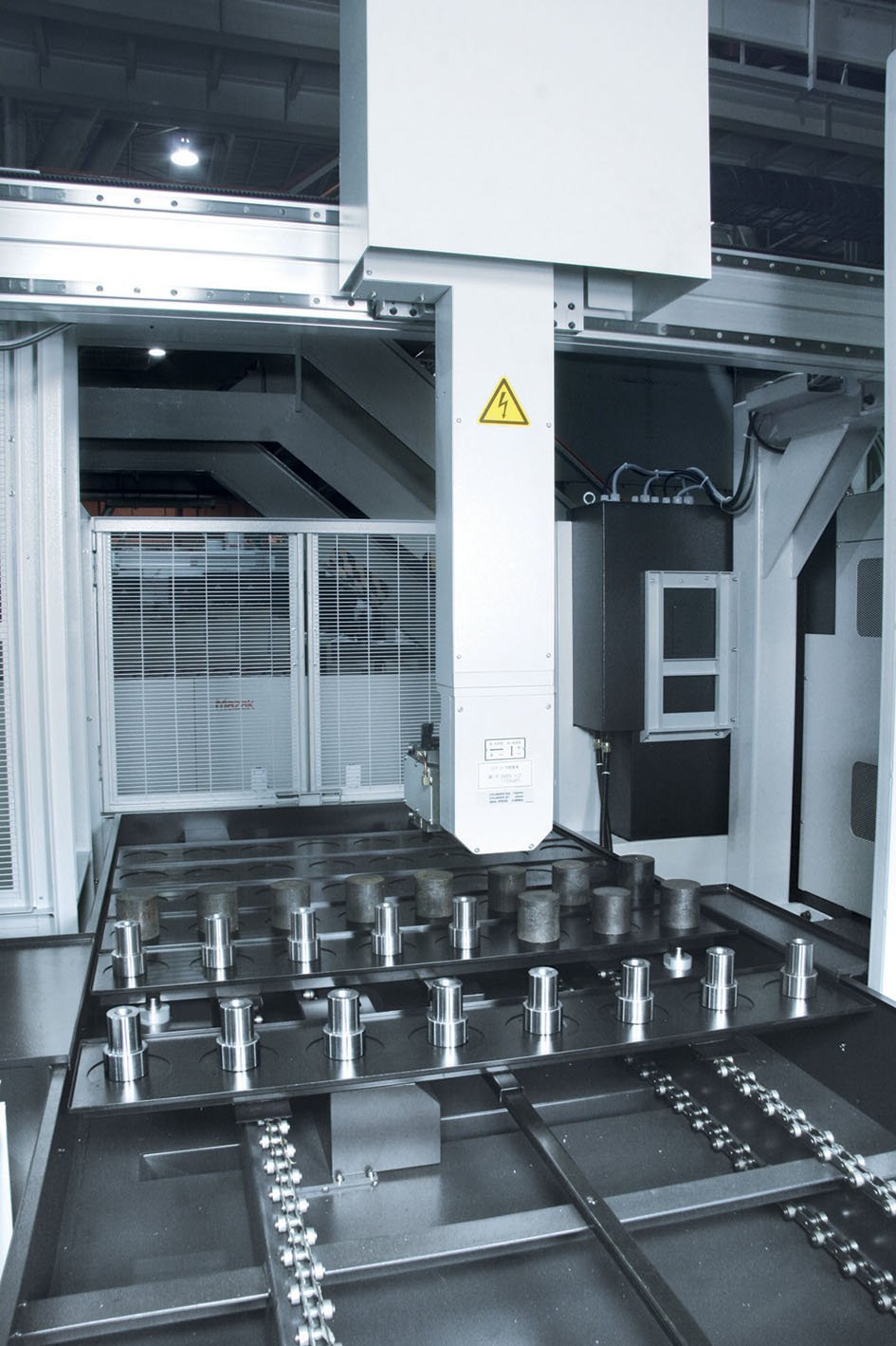 Ein Portalroboter mit gesonderten Be- und Entladegreifern, der es dem Endabnehmer ermöglicht, die in der Massenfertigung geforderten kurzen Taktzeiten zu erzielen. Ein weiteres, nicht unerhebliches Plus des GL-Portalladesystems ist seine Breite von gerade einmal 1.750 mm, mit der es auf kleinstem Raum Platz findet.