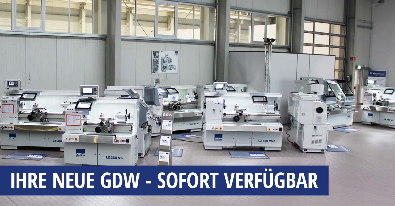 Die Lieferzeiten für Werkzeugmaschinen sind momentan extrem lang. Wir haben darauf reagiert und sorgen regelmäßig für ein reichhaltiges Portfolio in unserer Ausstellungshalle. Von unserem Partner GDW können wir Ihnen aktuell eine große Auswahl an Drehmaschinen anbieten. Schauen Sie sich in unserem aktuellen Lieferprogramm um. Vereinbaren Sie auch gleich Ihren Besichtigungstermin.