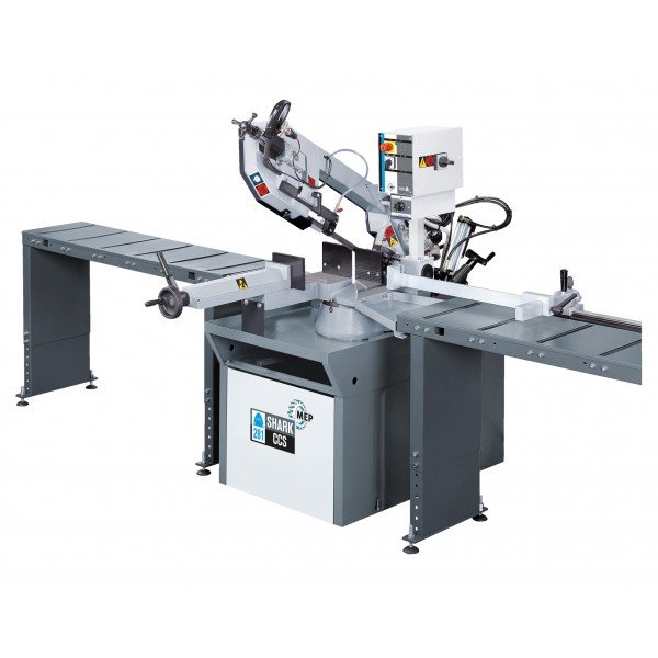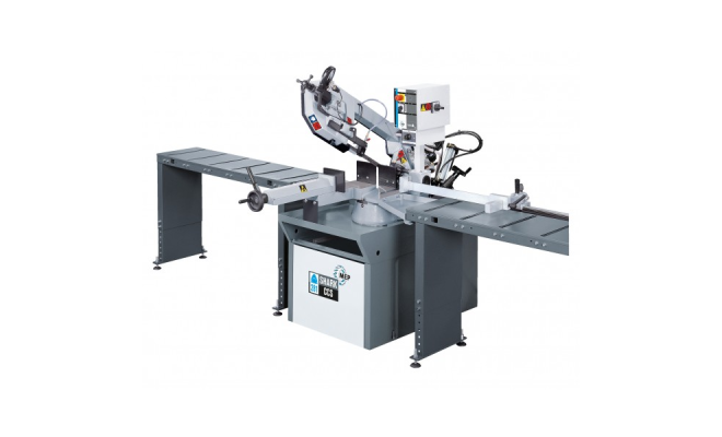 Leistungsstarke Gehrungsbandsägemaschine für Schnitte von 0° bis 60° links CCS (CutControlSystem) für automatischen Schnitt (stufenlose Regulierung des Vorschubs und Abschaltung bei Schnittende). Rund: 250 mm, Quadrat: 230 mm, Rechteck: 280 x 200 mm