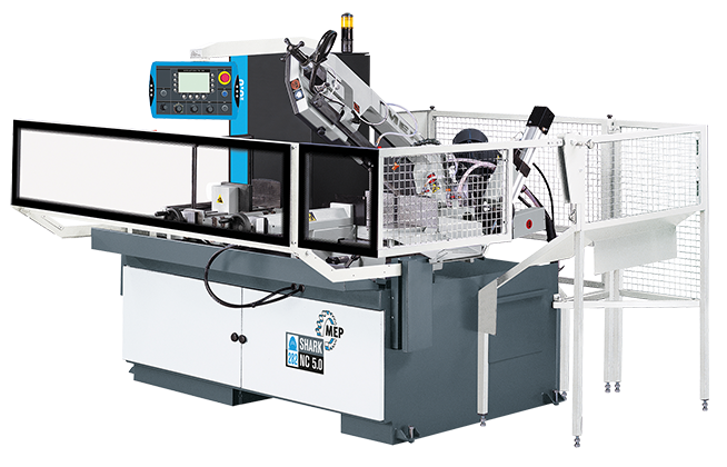 Leistungsstarke Gehrungsbandsägemaschine für Schnitte von 45° rechts bis 60° links. Elektrohydraulischer Halbautomat mit Windows CE basierter Touch-Screen-Steuerung. Rund: 250 mm, Quadrat: 220 mm, Rechteck: 280 x 220 mm