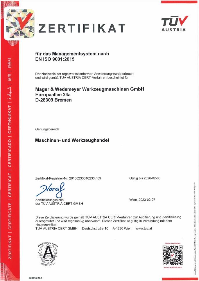Die Norm ISO 9001 legt Anforderungen fest, die es im Rahmen der Umsetzung eines allgemein anerkannten Qualitätsmanagementsystems in einem Unternehmen zu erfüllen gilt. Somit können wir unseren Kunden und Lieferanten gegenüber allgemeingültig nachweisen, dass wir ein Qualitätsmanagementsystem auf Basis der Norm ISO 9001 in unserem Unternehmen erfolgreich und vollständig umgesetzt haben.